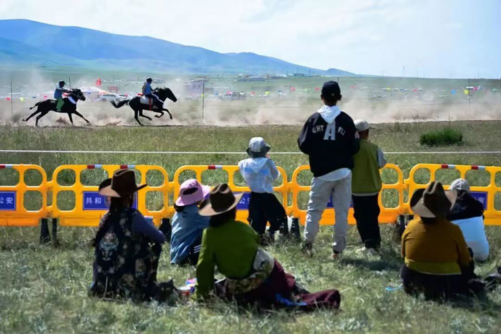 2025年8月17日,观众在共和县江西沟镇观看赛马。(新华社记者 齐芷玥 摄)