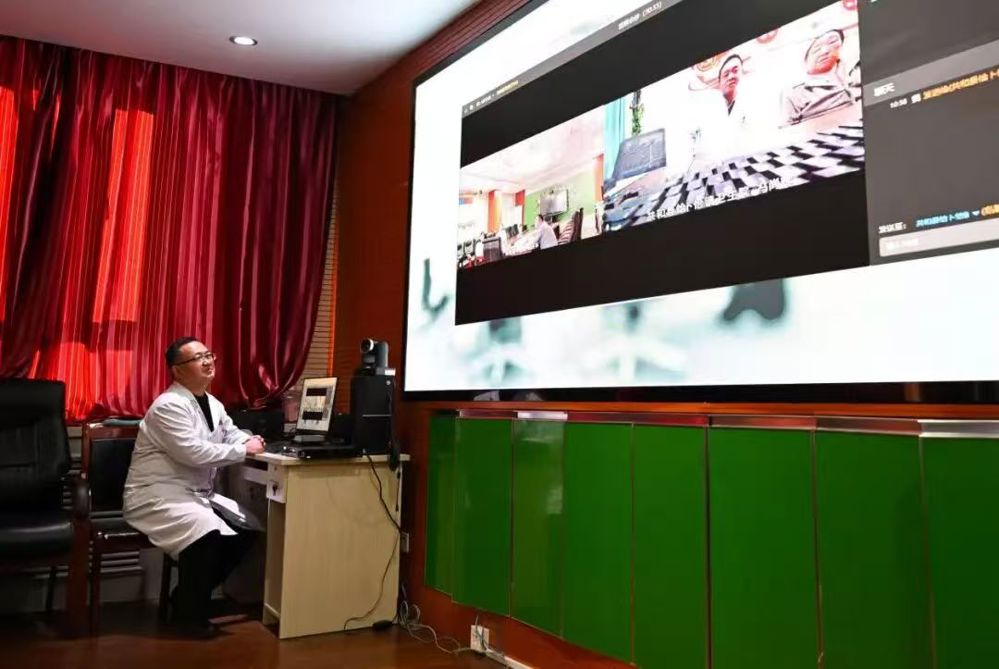 2024年12月17日,在青海省海南藏族自治州共和县中医院,医生穆连财在与乡镇卫生院连线进行远程会诊。(新华社记者 张龙 摄)