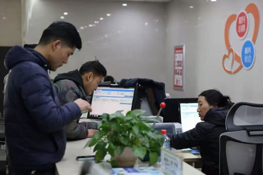 1月16日,在共和市民服务中心大厅,工作人员在为群众办理业务。(新华社记者 李宁 摄)